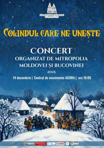 Arhiepiscopia Iașilor organizează concertul „Colindul care ne unește” de la ora 18.00, la Centrul de evenimente AGORA din Iași. Evenimentul este organizat prin intermediul Departamentului Misiune pentru Tineret din cadrul Sectorului Misiune al Arhiepiscopiei Iașilor, motiv pentru care vor participa coruri de copii și tineri: